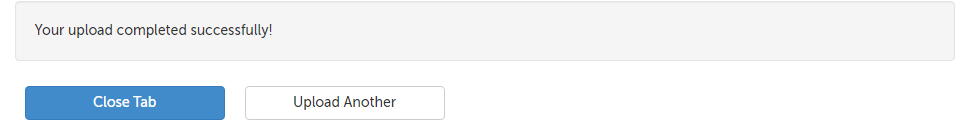 4. Once you see the "Your upload completed successfully!" message, click "Close Tab" to leave this page, or "Upload Another" to upload another file.