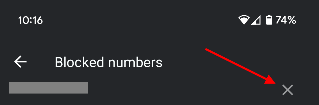 5. Scroll through the list of blocked numbers and tap the "X" next to the number you would like to unblock.