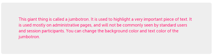 • Jumbotron Text: Jumbotrons are large text boxes that we use to highlight information. (Example below: Jumbotron Text set to pink.)